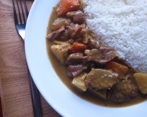 紐西蘭牛腱肉、胡蘿蔔、馬鈴薯、椰漿、甘味咖哩醬、樹薯粉
